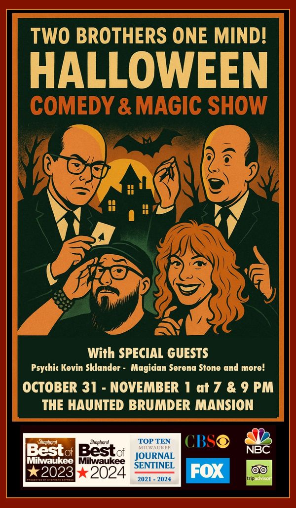 This annual celebration features an exciting lineup of entertainment, including comedians, magicians, psychic readings, and ghost hunting, making it a must-attend event for thrill-seekers and Halloween enthusiasts alike. Join the brothers and their special guests for a night filled with laughter, mystery, and spooky fun in one of Milwaukee's most iconic haunted locations.